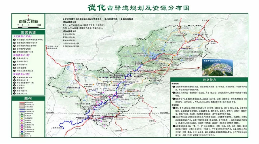莲麻古官道:莲麻古道沿线资源主要为自然生态、田园风光、古村落以及红色文化资源。规划利用沿线丰富的田园、山体、古村落、红色文化历史资源,发展乡村文化旅游、红色文化旅游,促进休闲观光旅游业与从化生态农业的协同发展。