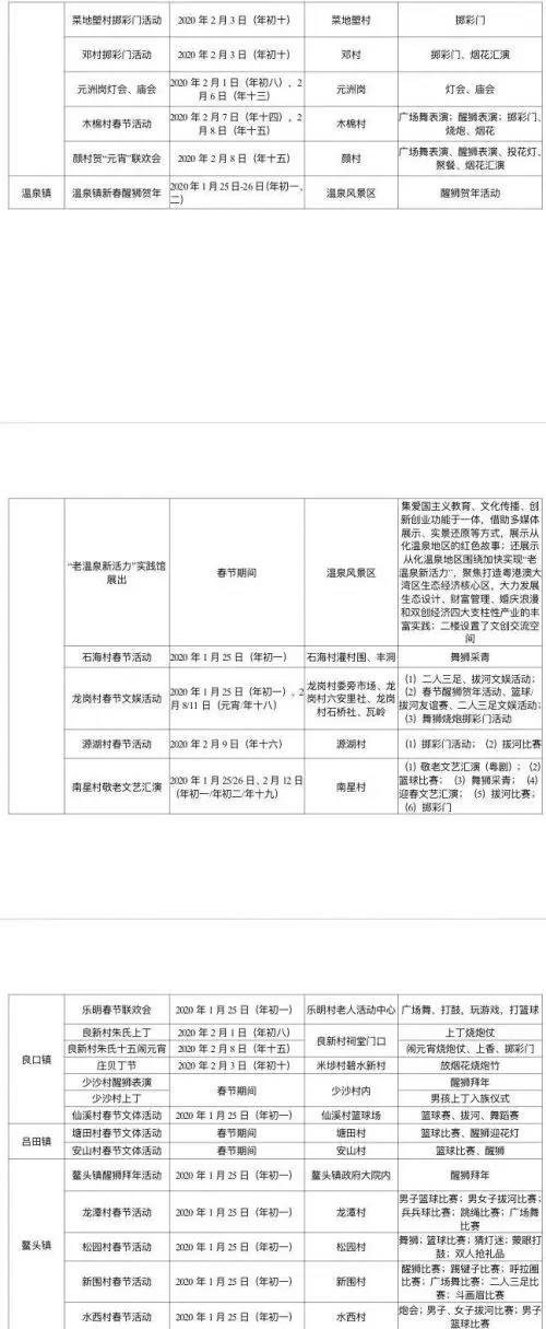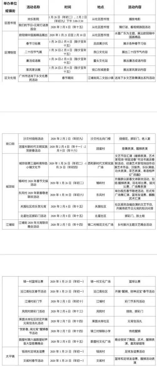 从化区春节期间文体活动安排表