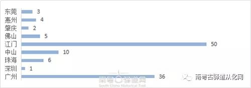 在第三次全国不可移动文物普查中,广东省登记不可移动文物37156处,对于华侨华人文化游径的基础研究工作,便是从这三万多处不可移动文物开始的。通过广东省不可移动文物平台检索“华侨”“华人”“海外”等几十个关键词,从三万多个不可移动文物点中筛选出1284处相关点。提取了名称、时期、文物类型、文物类型详情、级别、简介和位置等信息。在随后的初步梳理工作中,首先排除粤港澳大湾区九市以外的文物点,然后根据梳理过程中的实际情况,制定了华侨华人文化遗产资源点的六个选定标准。分别是有典型性、代表性、价值突出的文物点优先;与“港澳”关系密切的文物点优先;市、县级文物保护单位及以上等级文物点优先;在绿道沿线或靠近绿道的文物点优先;已经具备开放展示条件或者比较容易实现开放展示的文物点优先;与非物质文化遗产相关的文物点优先。按照这六条选定标准,最终筛选出与华侨华人相关的文物点117处,而更加具体的分析研究工作便是针对这117处文物点进行的。